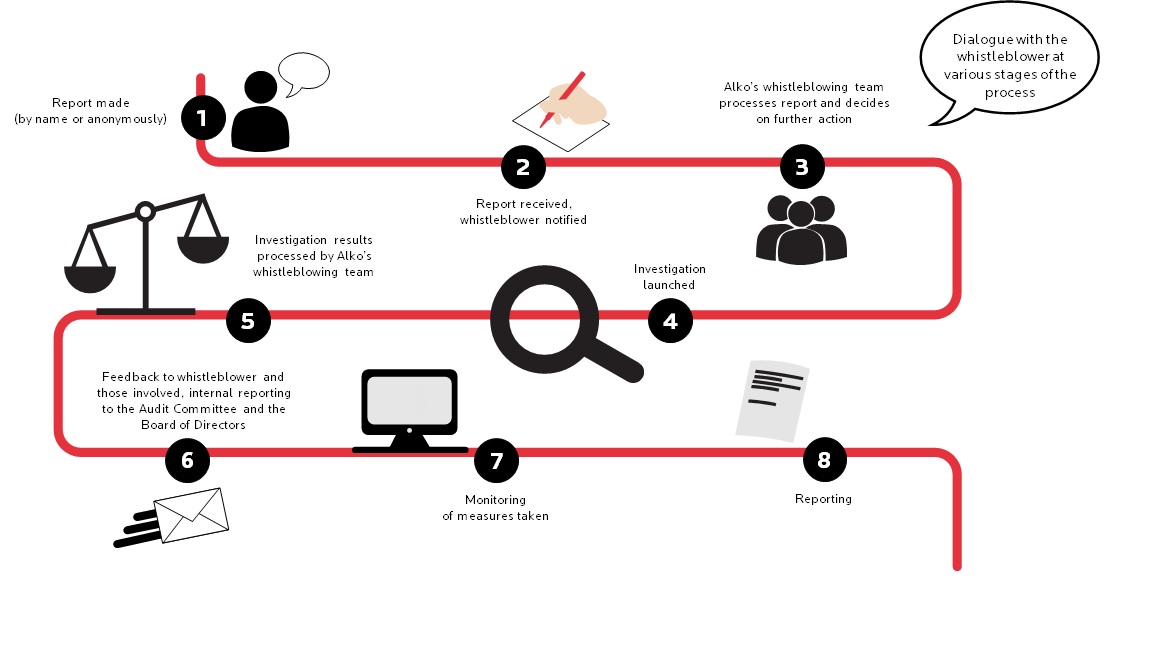 3. Alko’s whistleblowing team processes report and decides on further action