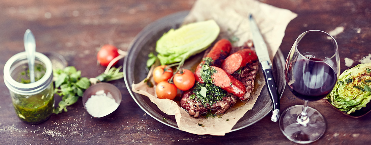 Argentiinassa pihvi tarjoillaan usein grillattuna chimichurri-kastikkeen ja vihreän salaatin kera. Etenkin syksyllä mukaan voi paahtaa uunissa juureksia.